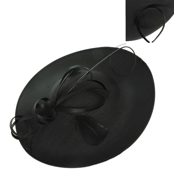 Make your entrance unforgettable in this striking Feather and Ribbon Fascinator in the iconic Saucer shape. This sculptural silhouette sweeps elegantly across the crown, framing the face with confidence and undeniable glamour.✨