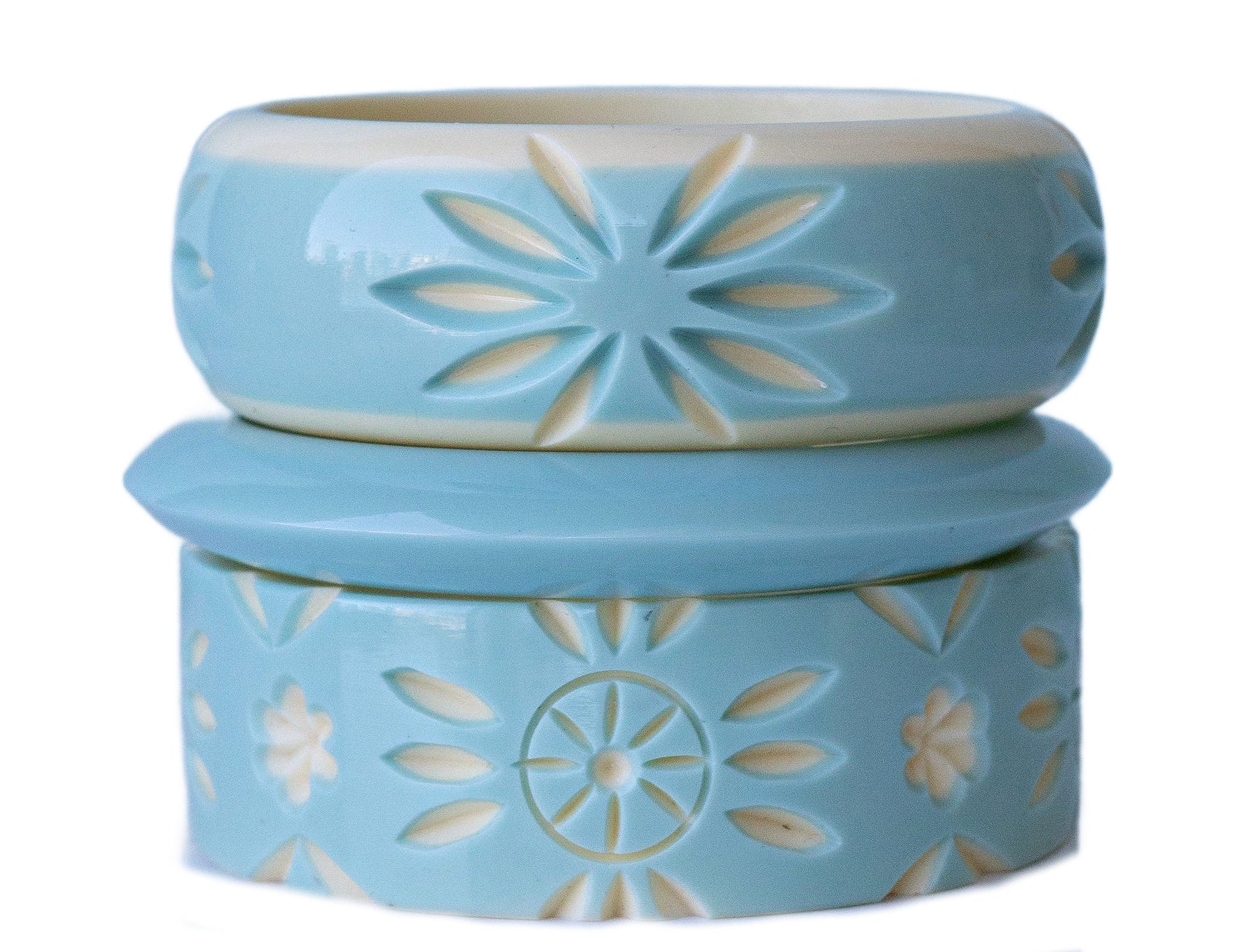 Beautiful muted colors, mid-century styling and vintage-inspired lucite bangles.  It's everything we LOVE about Palm Springs and MCM looks and it's all together in a set of bangles that are sure to go with all your vintage and modern outfits!