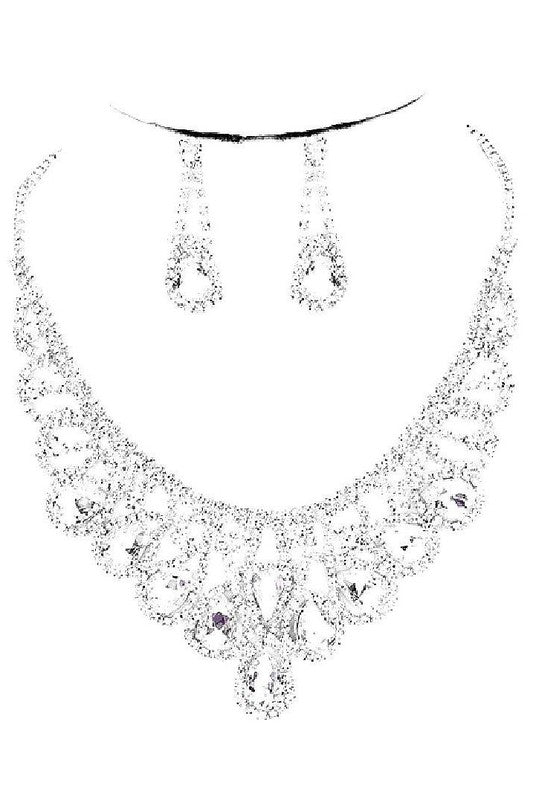 All hail the queen of drama. This rhinestone stunner fans out in swoops and swirls, dotted with juicy pear-cut drops—and comes with matching earrings to finish the romance. ❤️✨